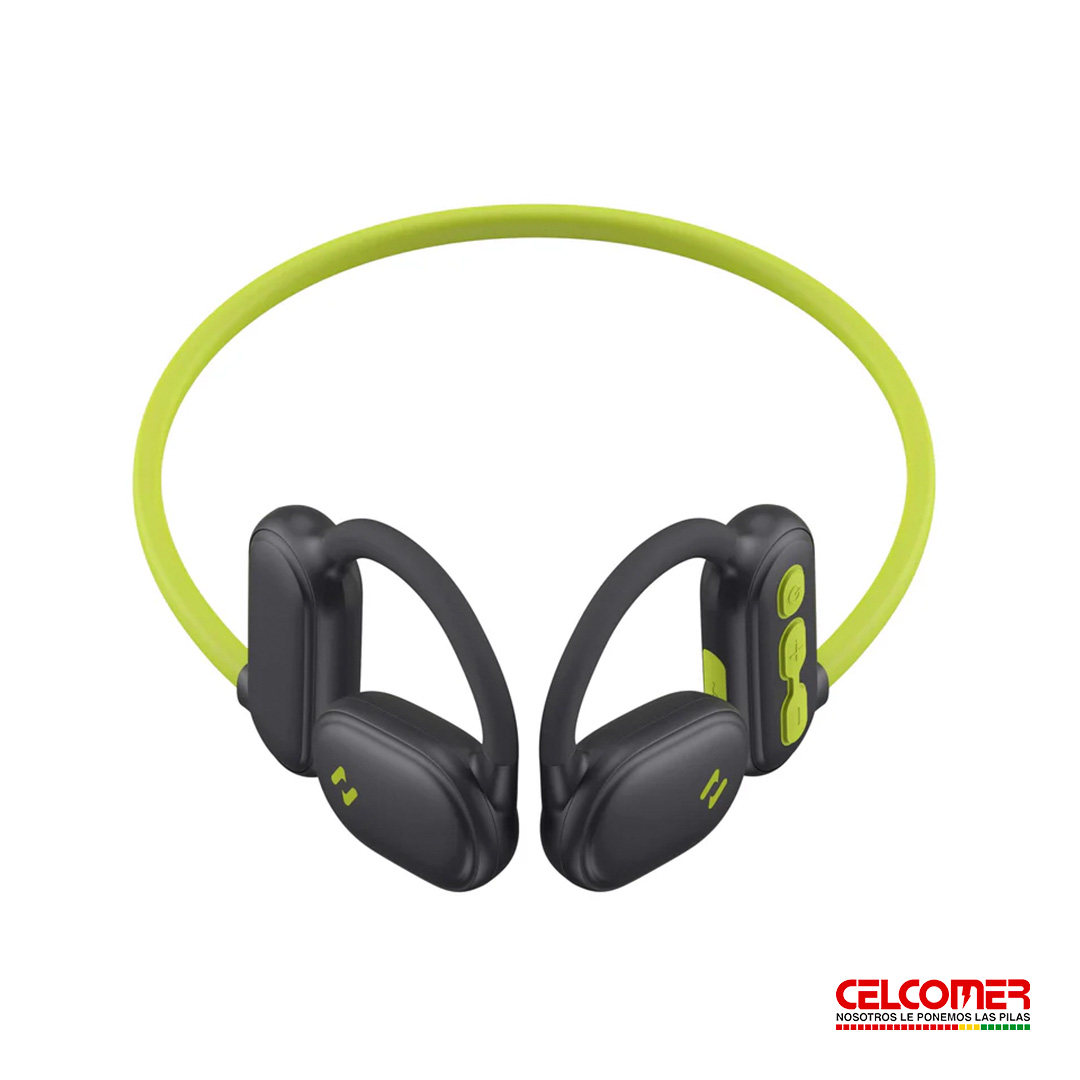 Diseño Ligero y Abierto: Su formato es de tipo "neckband" o de banda para el cuello, lo que asegura un ajuste estable y cómodo para actividades físicas. Su peso es de aproximadamente 25 gramos.